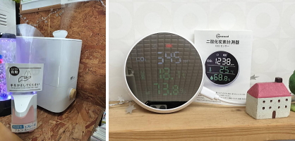 二酸化炭素濃度を計測し一定以上になれば換気も行っています。